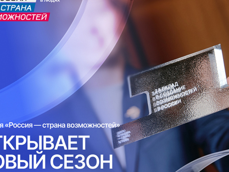Премия «Россия – страна возможностей» была учреждена по поручению Президента Российской Федерации для поддержки инициативных граждан. В первом сезоне заявки на участие подали более 33 000 человек из 89 регионов России и 27 стран мира. Финалистами стали 100 человек из 37 регионов.